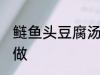 1、材料:花鲢鱼头半个、豆腐一盒、枸杞子少量、油适量、盐2勺、料油3勺、小葱若干、生姜若干。2、鱼头半个,里外清洗干净,并淋干水份。 ....